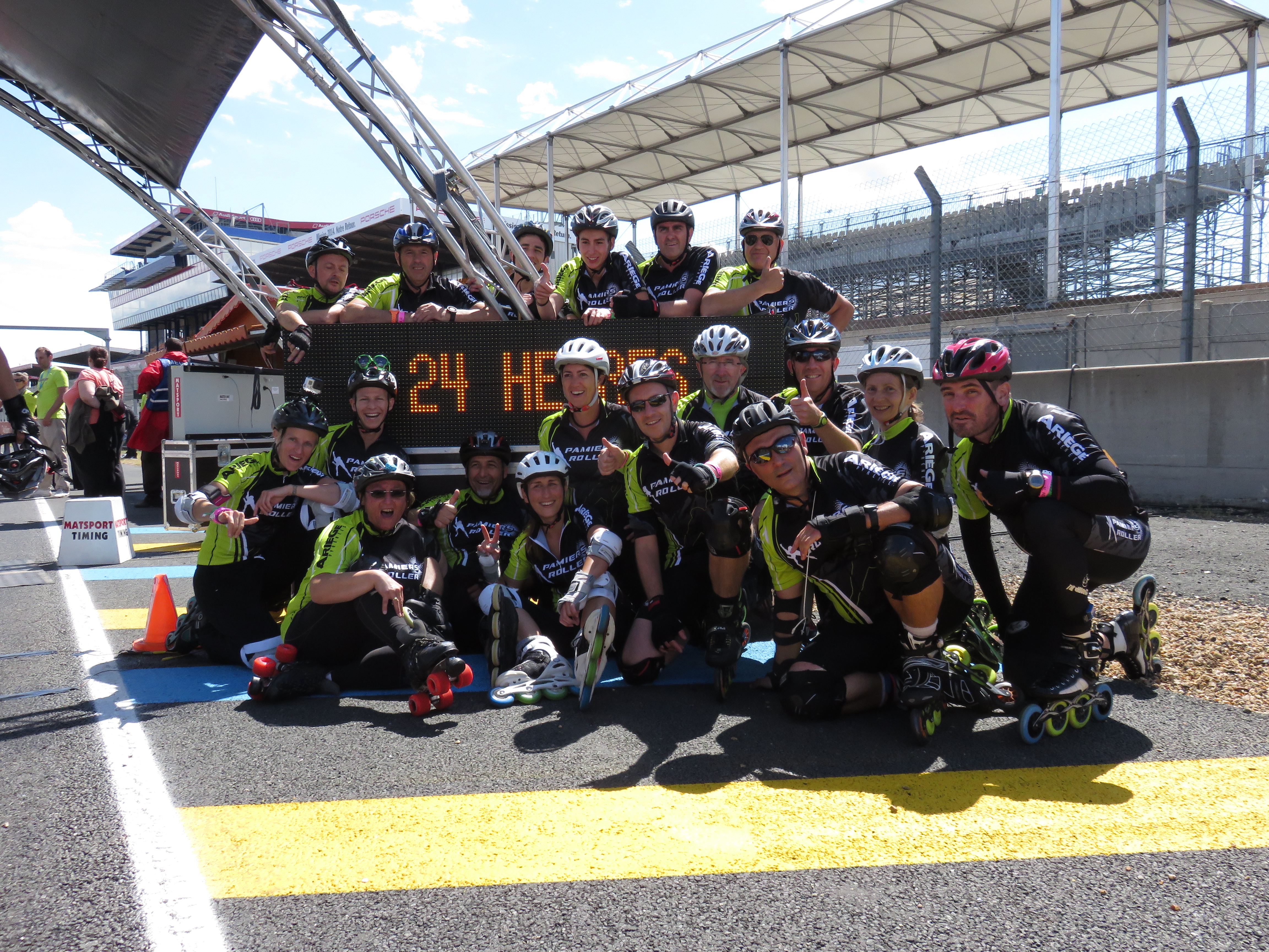 Et voilà, fin de cette belle aventure que sont les 24h du mans Roller. Pour cette édition 2014, la pluie, le vent, la grêle se sont invités de façon quasi ininterrompue rendant la piste telle une patinoire. Les conditions auront été donc extrêmement difficiles mais toutes les équipes engagées sont arrivées au bout sans se faire mal.